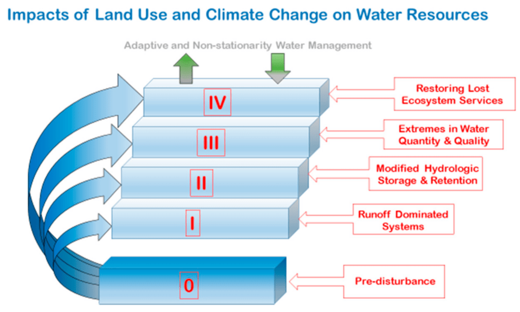The combined effects of climate change and land-use alterations pose significant challenges to water resources management globally, including in France. By restoring ecosystems, implementing sustainable land-use practices, and investing in water-saving technologies, we can mitigate these impacts and ensure water security for future generations. A comprehensive understanding of pre-disturbance hydrological conditions is essential for developing effective adaptation strategies.