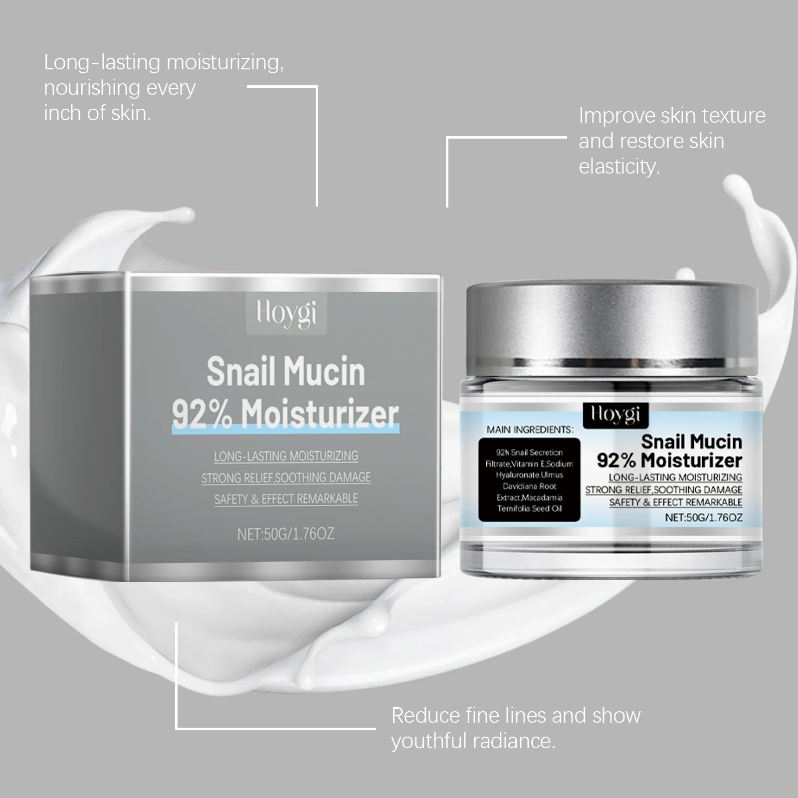 - Snail Mucin (90%) – Skin regeneration & hydration
