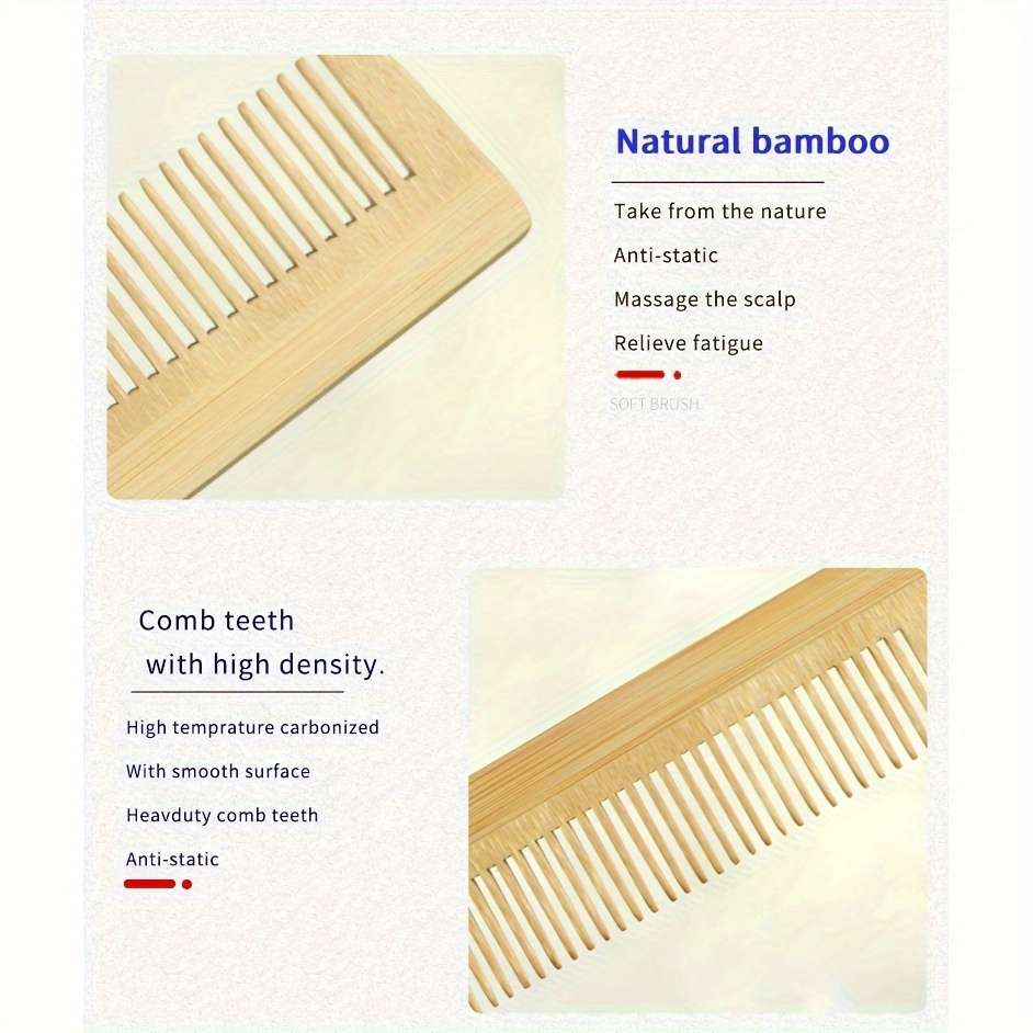 Made entirely from natural bamboo, this fine-tooth comb glides smoothly through normal hair types, gently detangling without pulling or breakage. The soft, rounded teeth provide a comfortable scalp massage, stimulating circulation while keeping your hair healthy and tangle-free.