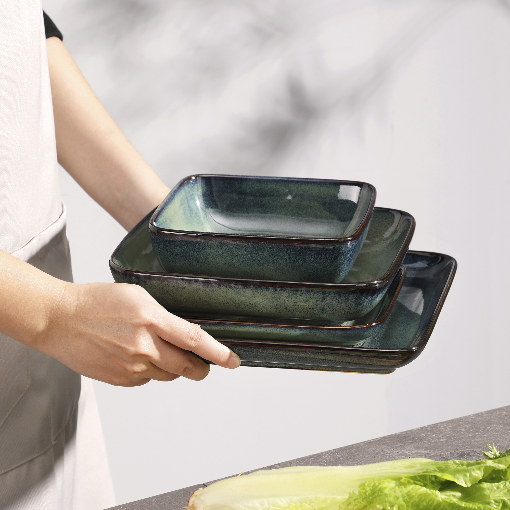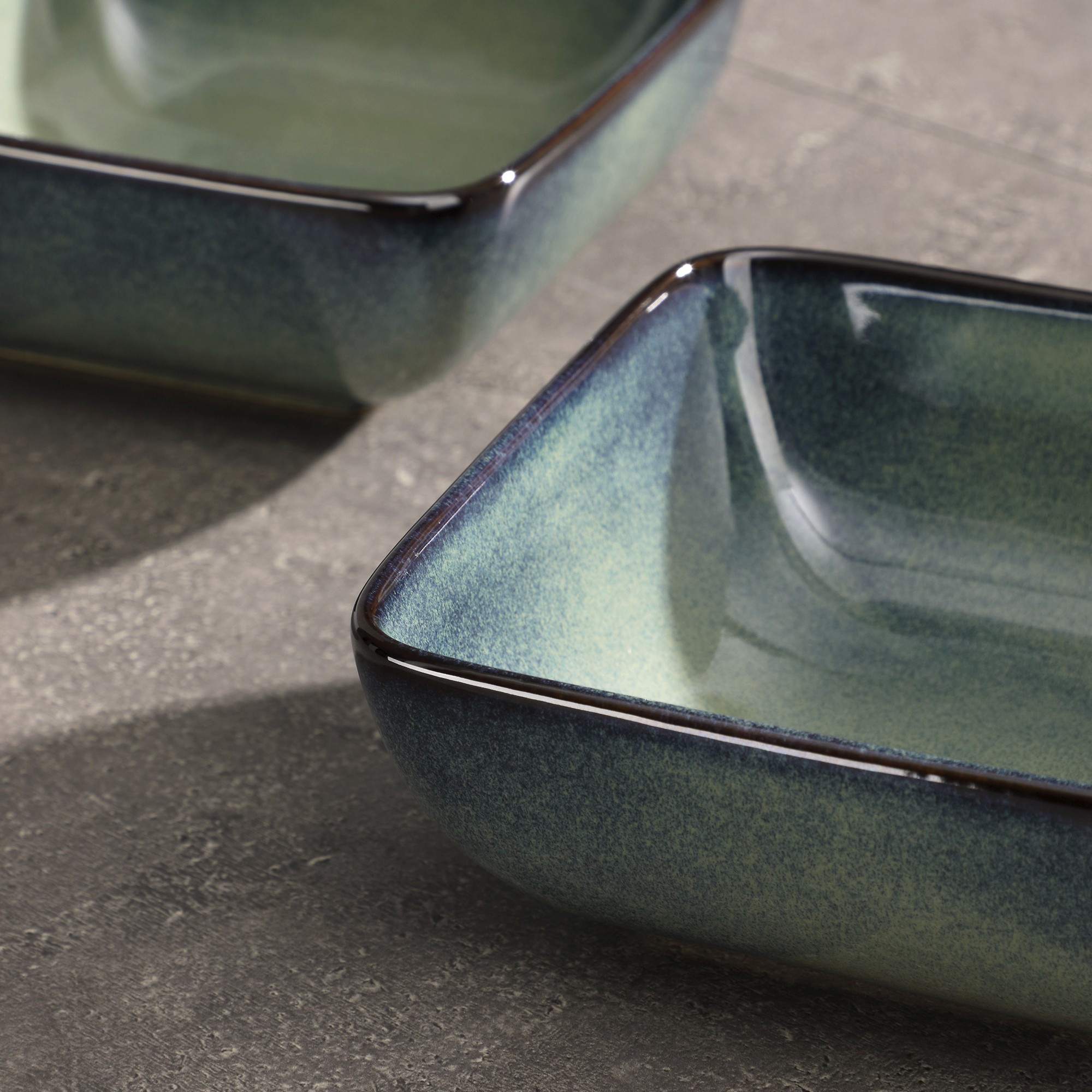 This modern square design with a beautiful gradient finish adds a stylish touch to your tableware collection. The kiln-fired glaze creates a unique transition from starry blue to gradient green, resulting in soft and natural color changes. The special glaze color combination pushes the boundaries of craftsmanship, bringing glamour to your table and enhancing the style of your dishes.