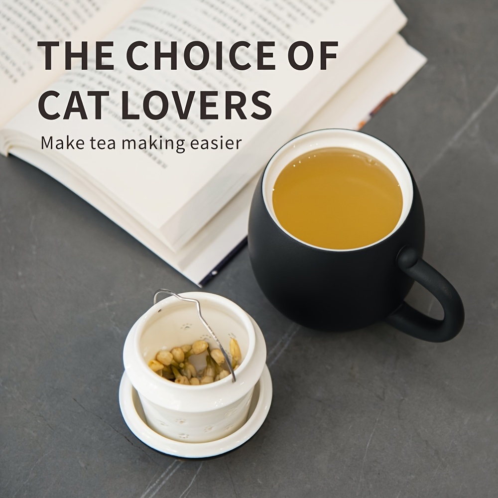 1pc, Ceramic Tea Mug With Infuser And Lid, Cute Cat Tea Cup With Filter For Steeping Loose Leaf, Chinese Handmade Porcelain Teacup For Home Office