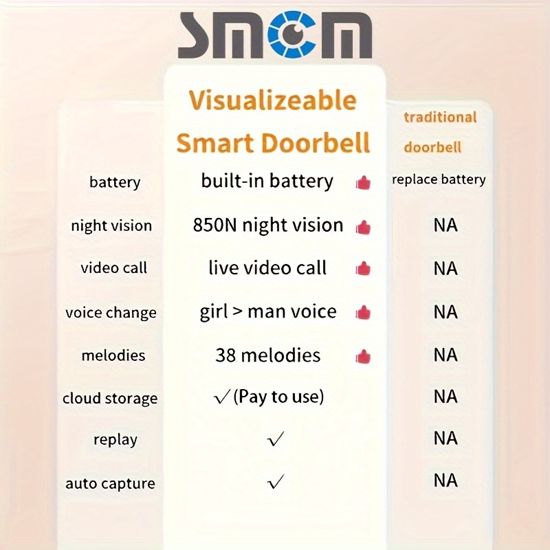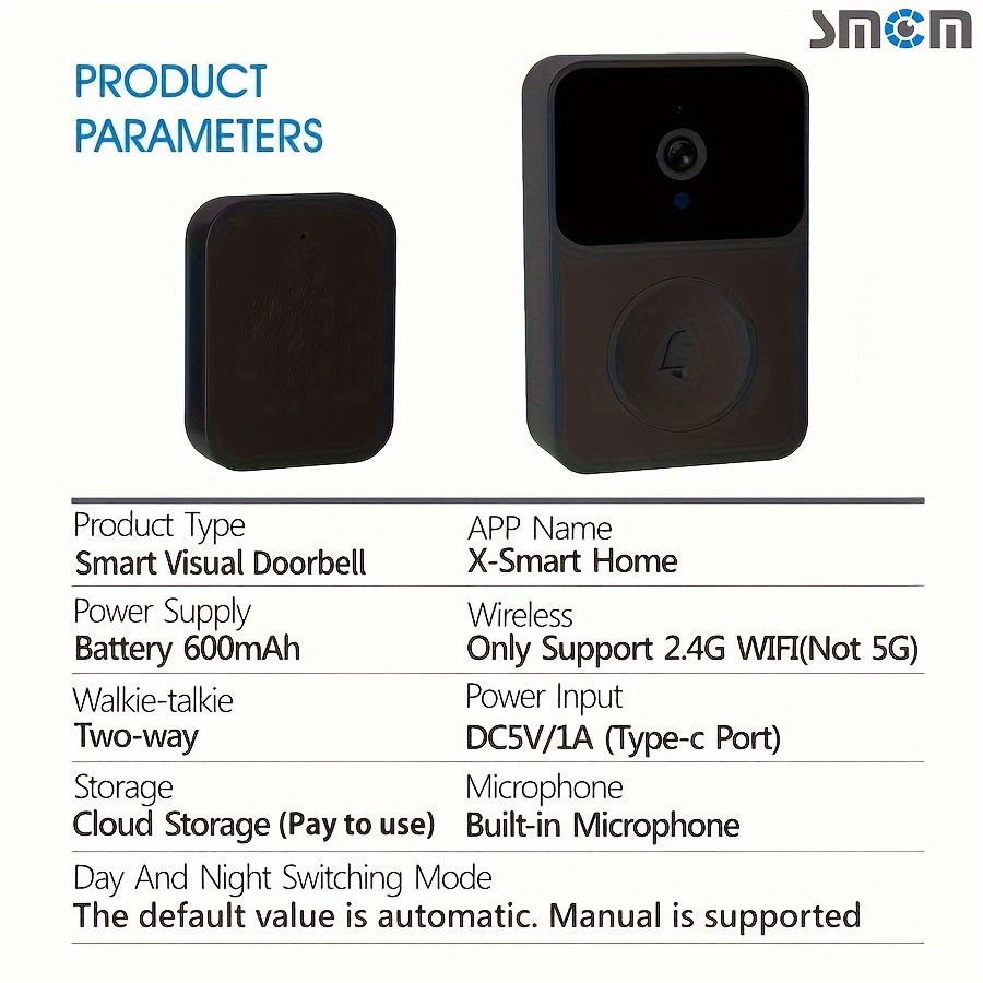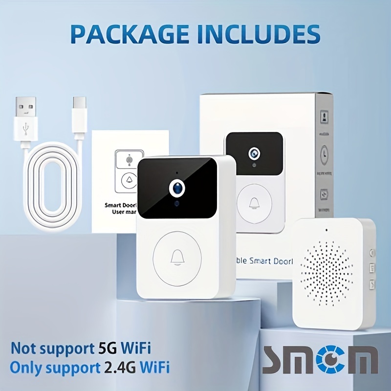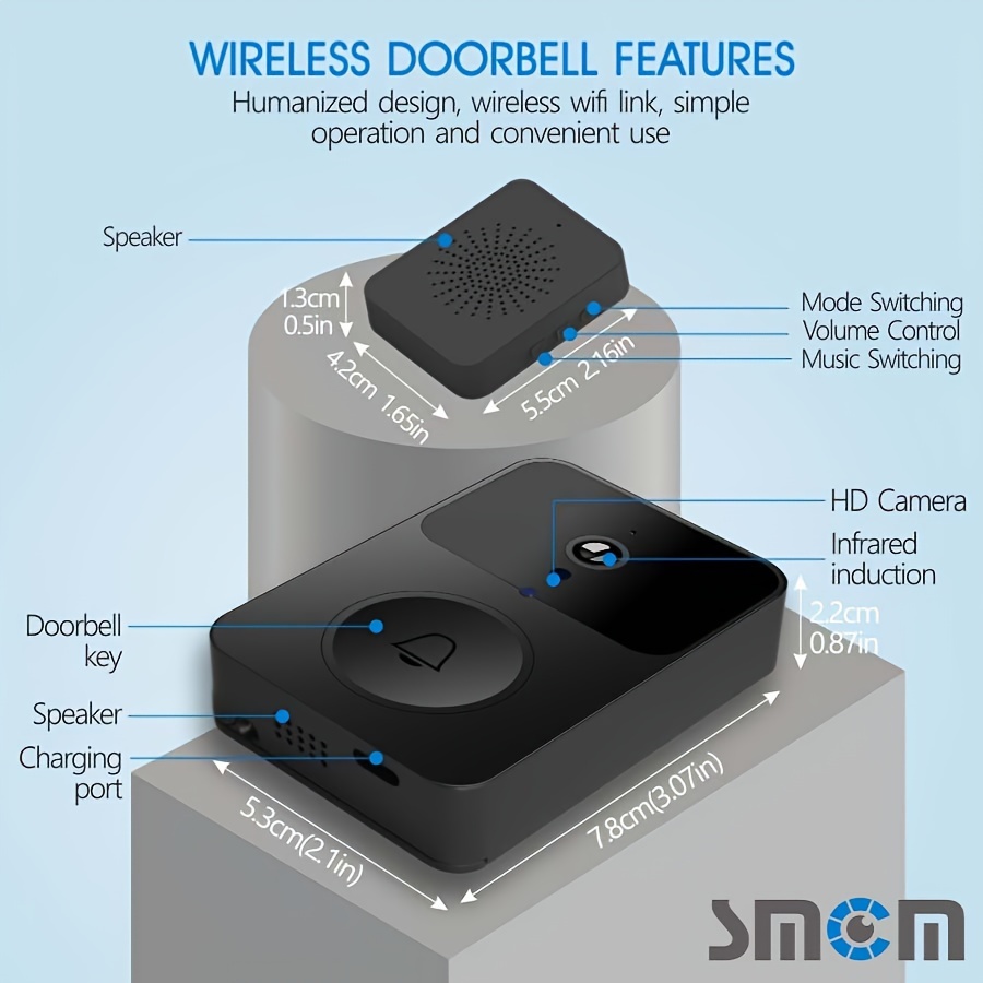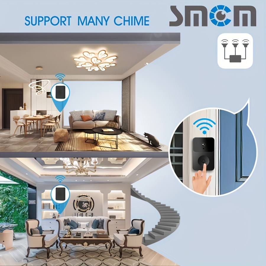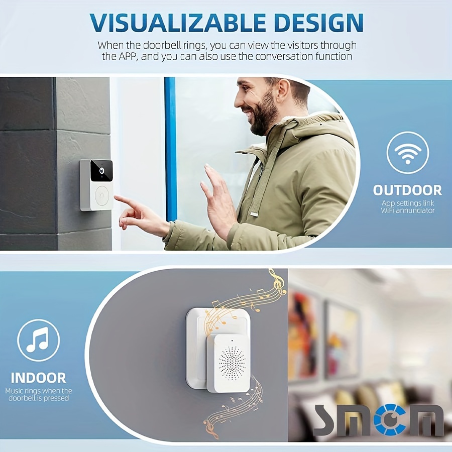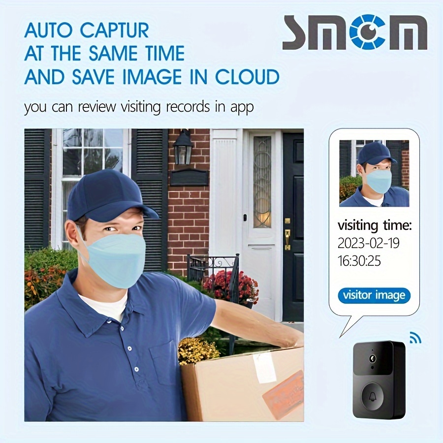 Enhance your home security with the SMCM Wireless Video Doorbell, a sleek and modern solution available in black or white. With real-time video, two-way audio, and night vision, this smart doorbell lets you see and speak to visitors from your smartphone or tablet—anytime, anywhere.