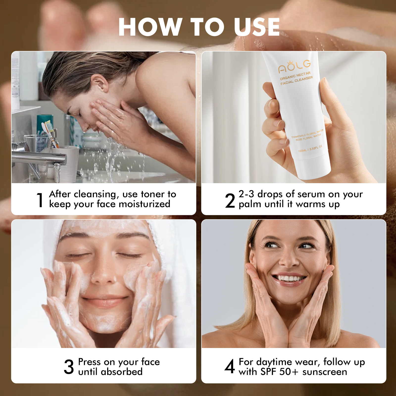 AOLG Triple-Action Organic Nectar Cleanser: Gentle 3-in-1 Purify + Hydrate + Soothe for All Skin Types Skincare Moisturizer Hydrating