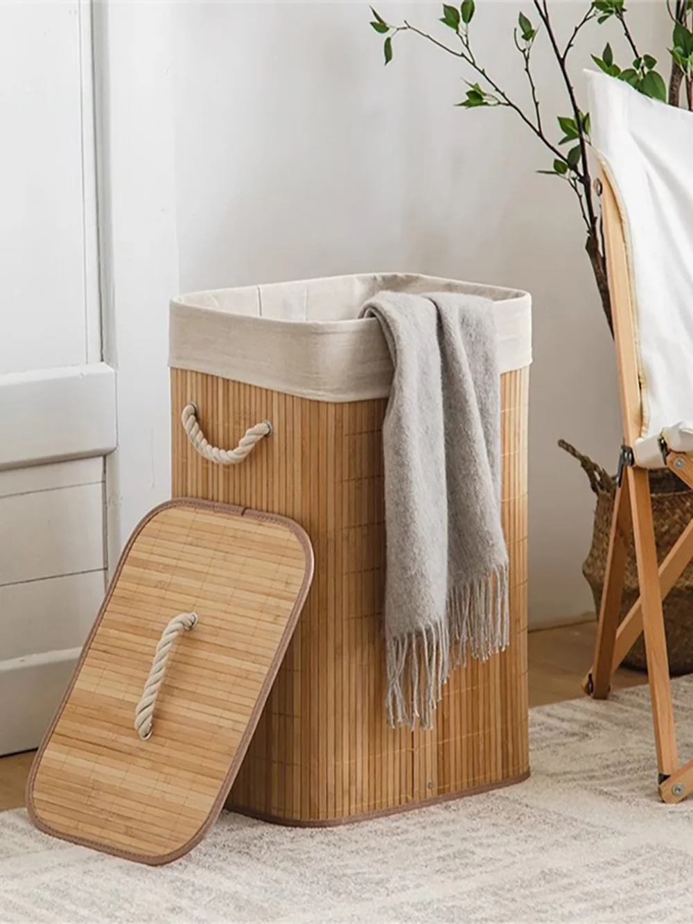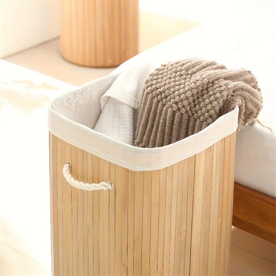 Bamboo Foldable Storage Basket, Large Capacity Laundry Basket, Toy Storage Box, Household Storage Basket, Foldable Bamboo Laundry Basket, Large Bamboo Foldable Storage Basket – Suitable for Bedroom, Bathroom, Laundry Room, Organizing Toys and Clothes