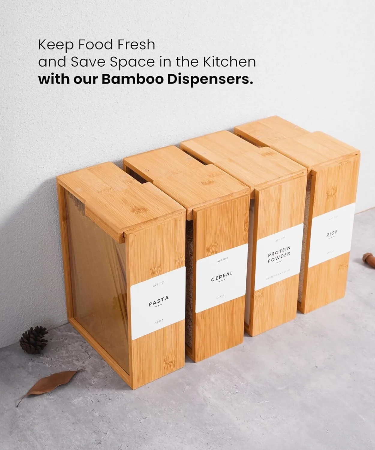 • Versatile Kitchen Organizers and Storage: Ideal for organizing cereals, rice, flour, and snacks with this bamboo food dispenser.