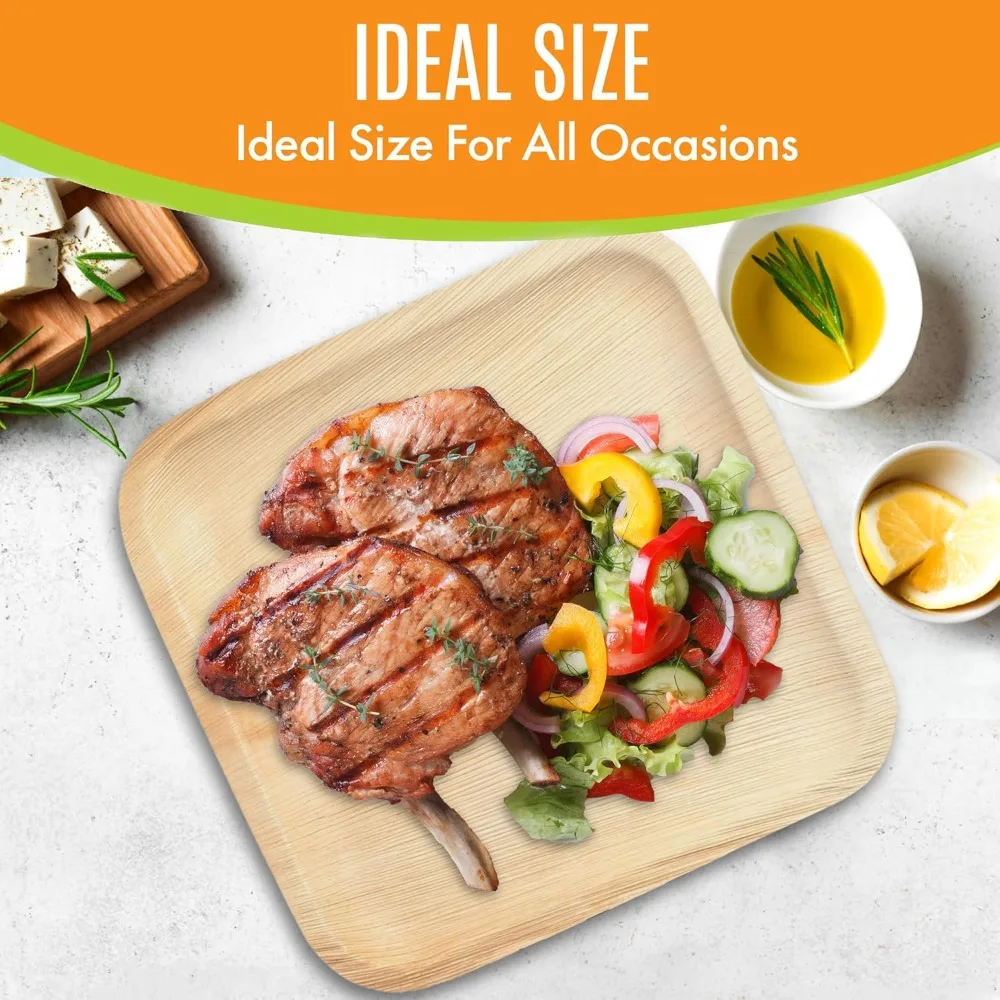 This product offers a value pack of dinnerware, consisting of 4 cases with 50-count of 10-inch square plates each. It’s an ideal choice for various occasions, providing a range of sizes and shapes to suit your needs. The portable nature of these plates makes them perfect for birthday parties, weddings, picnics, camping, and outdoor events. Each plate is crafted from natural leaves, resulting in a unique design and pattern for every piece. This distinctiveness is a standout feature, turning them into a conversation piece at any gathering. Safety is paramount, and these plates are 100% natural, free from toxic chemicals, making them safe for use. As a fully compostable and eco-friendly option, you can dispose of them in your backyard after use. Environmentally conscious, these palm leaf plates are sustainable and do not harm any trees during production. Made from fallen Areca leaves, they are biodegradable and can be recycled or composted within 5-8 weeks. They are 100% natural and chemical-free. These multipurpose dinnerware sets are suitable for house parties, social events, weddings, festivals, takeout food, craftwork, or any time you wish to minimize washing up. The palm dinnerware set is designed to cater to your needs.