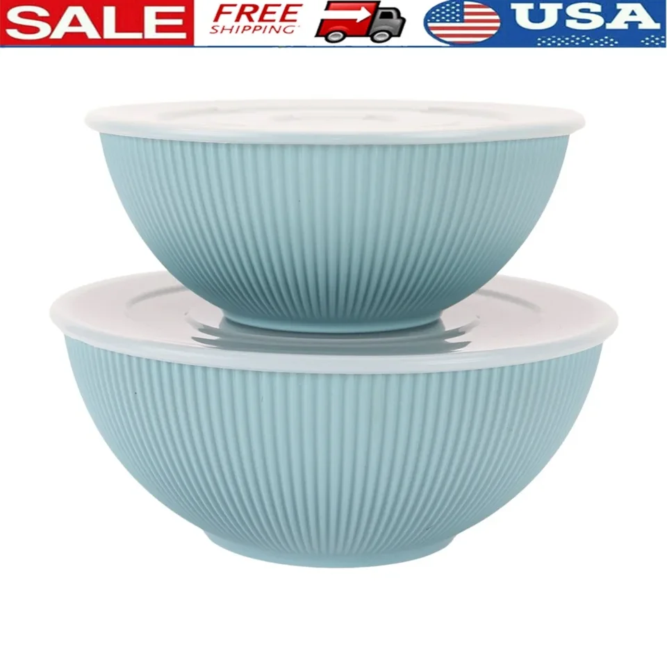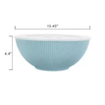 wants to contribute to a better world by offering eco-friendly products and do our part one piece at a time to offer solutions to global challenges such as water and sustainable production and consumption. If you are eager to embrace an eco-friendly lifestyle; is committed to offering environmentally friendly products made with sustainable materials. If you are looking to change out your traditional serveware, these eco-friendly serveware items are sustainably made from 70% post-consumer recycled water bottles, are BPA free and food safe. Made with you in mind, these serve bowls are non-toxic and non-porous, so you do not have to worry about germs and bacteria. These eco-friendly serving bowls feature a timeless and pleasing modern style with a focus on environmentally friendly materials. The ribbed texture lidded serve bowls are stackable for easy storage and feature a speckled design with a matte finish. Perfectly sized for various use, the large serve bowl is 10. 45-inch in diameter by 4. 4-inch in height and the medium serve bowl is 9-inch in diameter by 3. 87-inch in height. Available in 3 chic mix and match color options. Eco-friendly tableware is ideal for everyday dining, outdoor entertaining, picnics and parties. Unlike ceramic or glass, these lightweight pieces will not shatter when dropped making them the perfect sustainable and sleek dinnerware solution that is safe, durable and user friendly. Pick up the 4-Piece Eco-Friendly Recycled PET Serve Bowl Set today! Matching dinner plates, dinner bowls, tumblers and flatware are also available for purchase.
