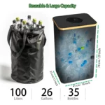 This large-capacity recycling bin is designed to make waste management in your home effortless and eco-friendly. With a spacious 26-gallon size, it can hold up to 35 unsqueezed plastic bottles, providing ample storage for recyclables like cans, glass, and plastic without frequent emptying. The removable lid allows for convenient one-handed operation—simply insert bottles without needing to touch the lid, keeping hands clean and reducing mess. Assembly is quick and straightforward: just insert the four white rods into the black straps at the corners of the base for a stable, collapsible design that saves space when not in use. Made from thickened Oxford cloth with a special waterproof coating, this bin is durable, wear-resistant, and easy to maintain; most stains can be wiped away with a rag without rinsing. The reusable inner bag is crafted from recycled materials, making it 100% environmentally friendly and machine washable for hassle-free cleaning. Secured with horn buckles at all four corners, you can easily detach the bag to transport recyclables directly to collection sites. The lightweight bamboo handle adds portability while resisting rust. Ideal for kitchens or indoor areas, this bin helps organize waste efficiently while promoting sustainable living. Its sturdy construction ensures long-term use, and the sleek black color blends seamlessly with home decor. Upgrade your recycling routine today with this practical and green solution.