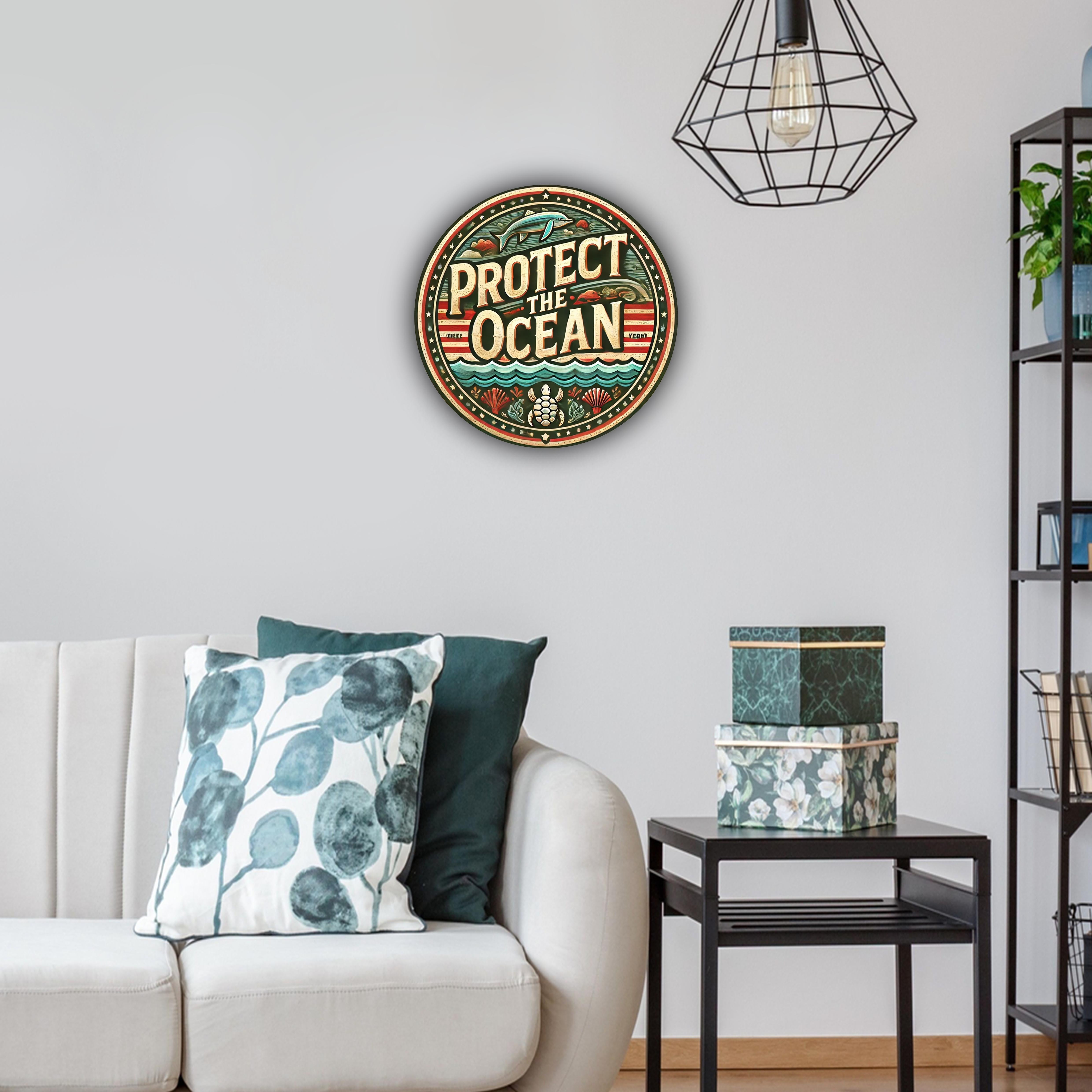 This vintage-style circular sign features a beautifully crafted “Protect the Ocean” message on an 8-inch durable aluminum plaque. Whether you’re decorating your living room, bathroom, beach house, or garden shed, this eco-friendly decor piece adds a touch of oceanic inspiration while reminding everyone to care for our planet’s most precious resource.