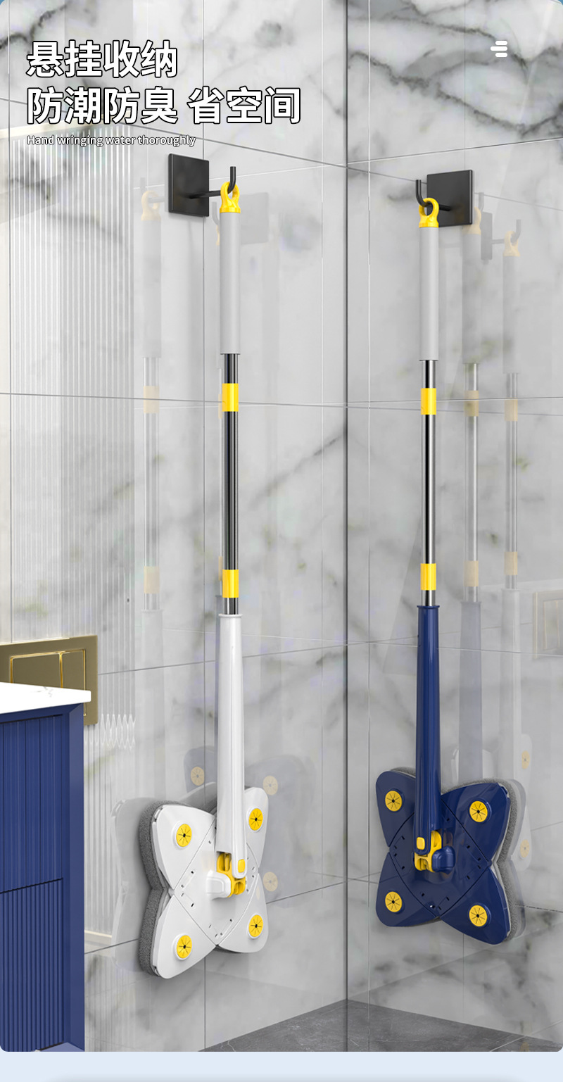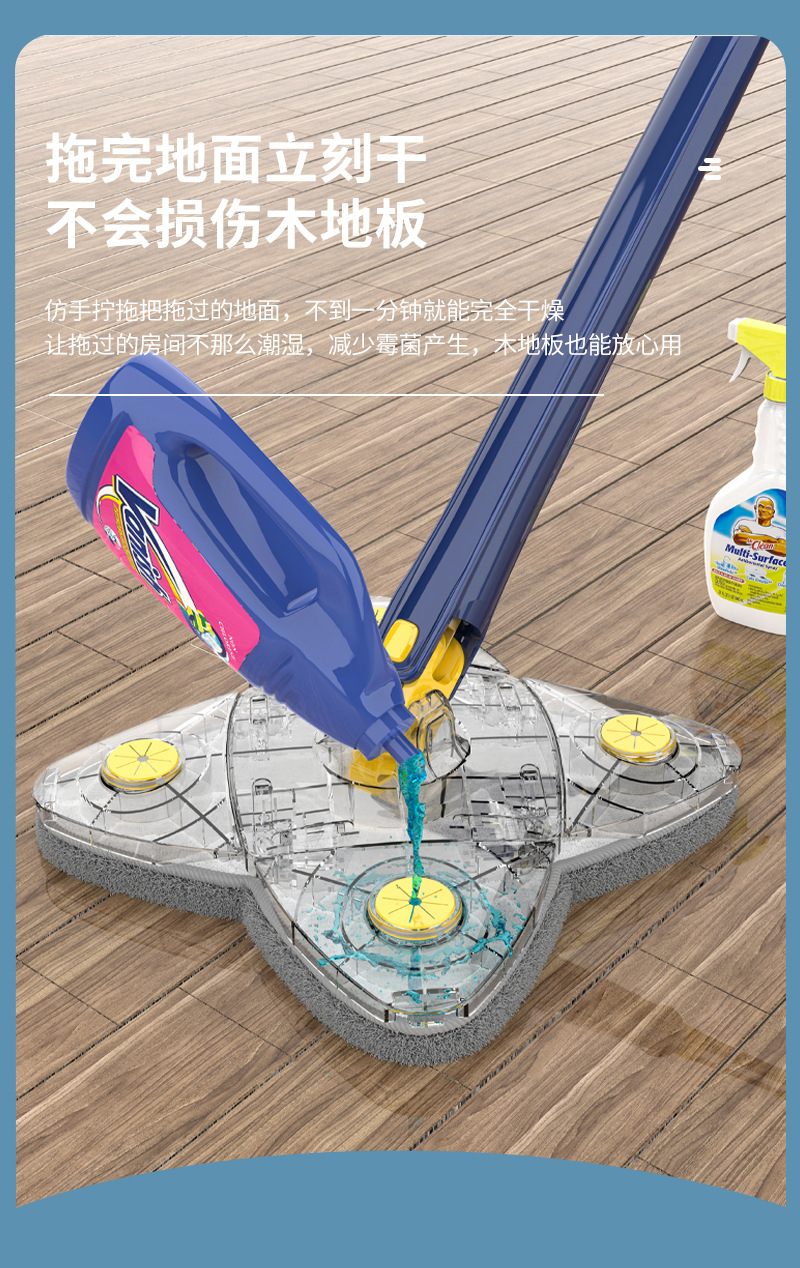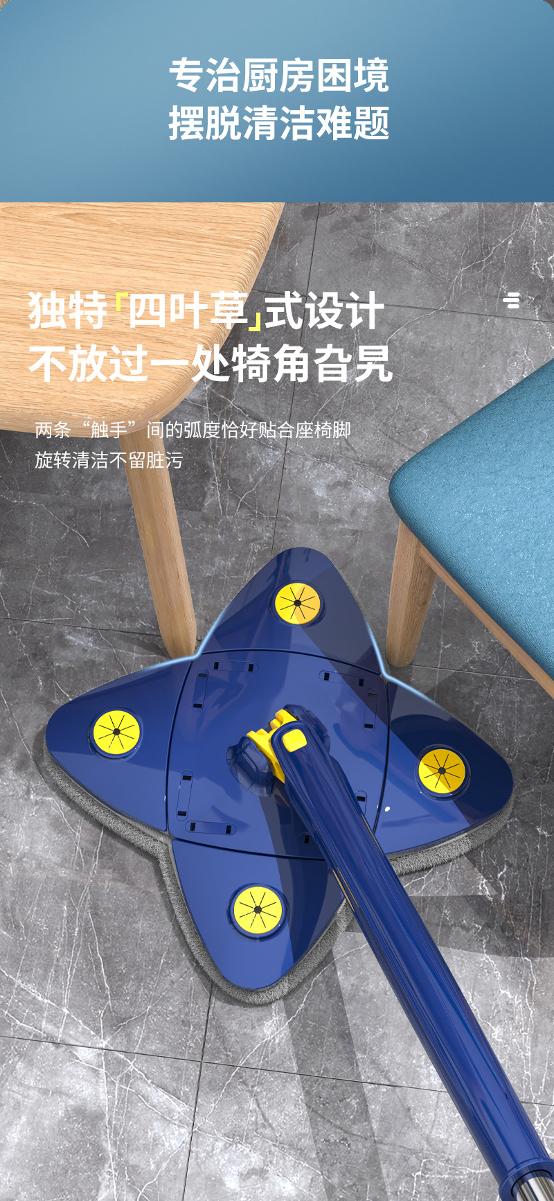 Triangle 360 Cleaning Mop Clean Tiles and Walls Household Ceiling Telescopic Brush Tool Self-draining