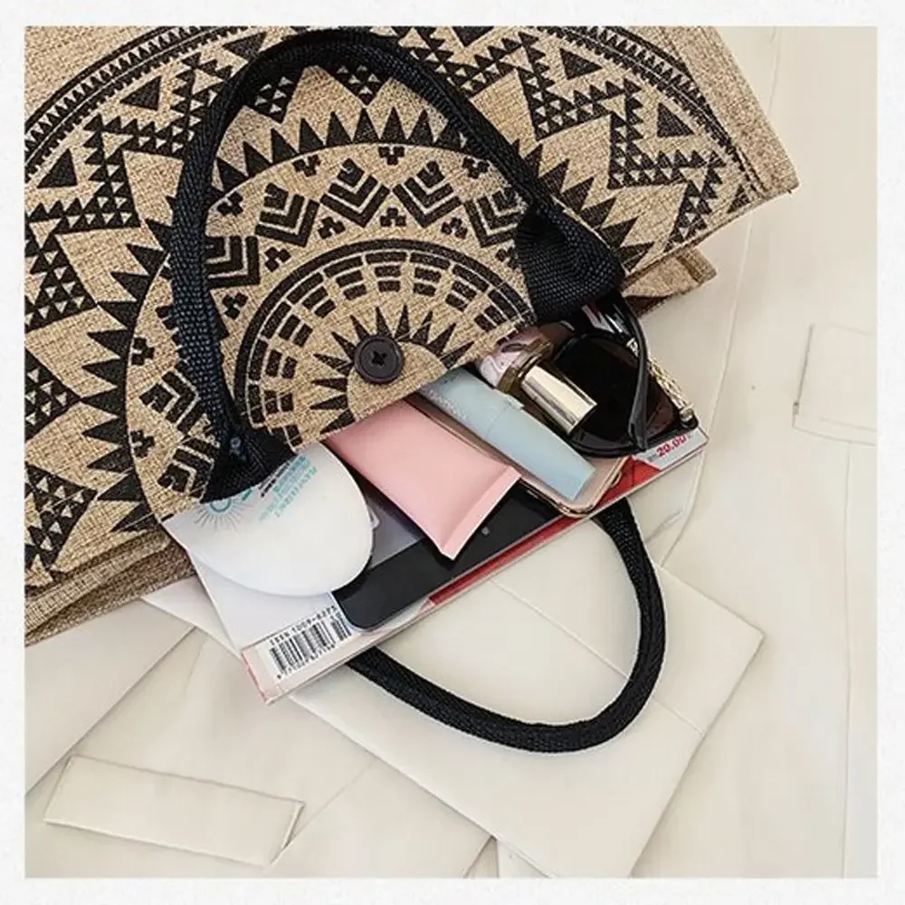 Vintage Korean Tote Bag Casual Lady Shoulder Eco Canvas Bags National Style Women Recycle Handbag Shopping Bag Storage Bag