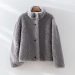 Wool and fur combined fur coat – mid-length, fashionable stand-up collar, warm and stylish women’s coat